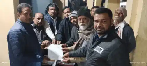 Other attendees included Prakash Chandra Jha and KP Singh. Pintu Lal was among the workers present. The group submitted their formal complaint together.