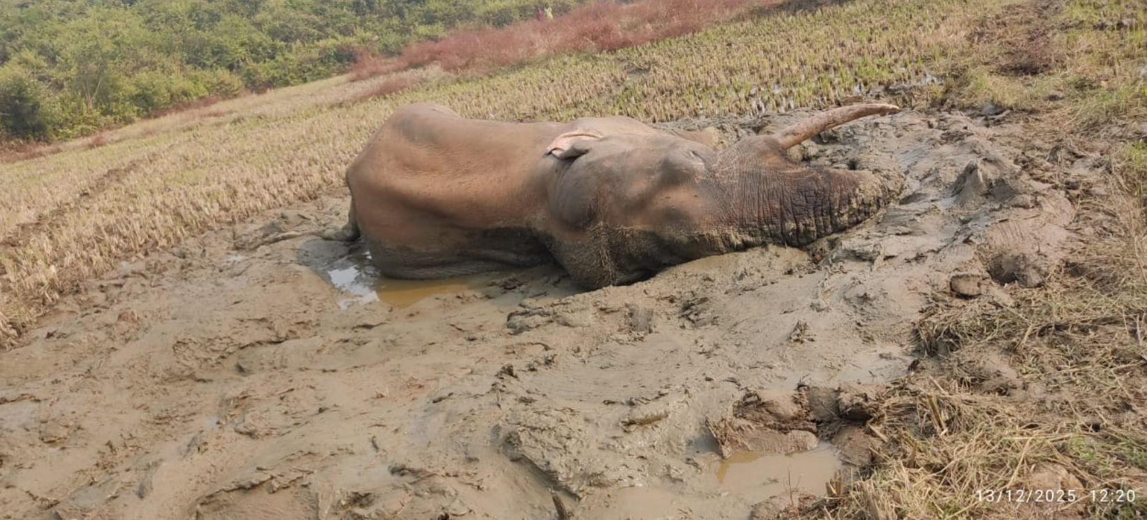 ग्रामीणों ने बताया, “ कई बार हाथी को बचाने की कोशिश की, लेकिन कीचड़ में फँसने के बाद उसकी ताकत पूरी तरह खत्म हो गई थी।