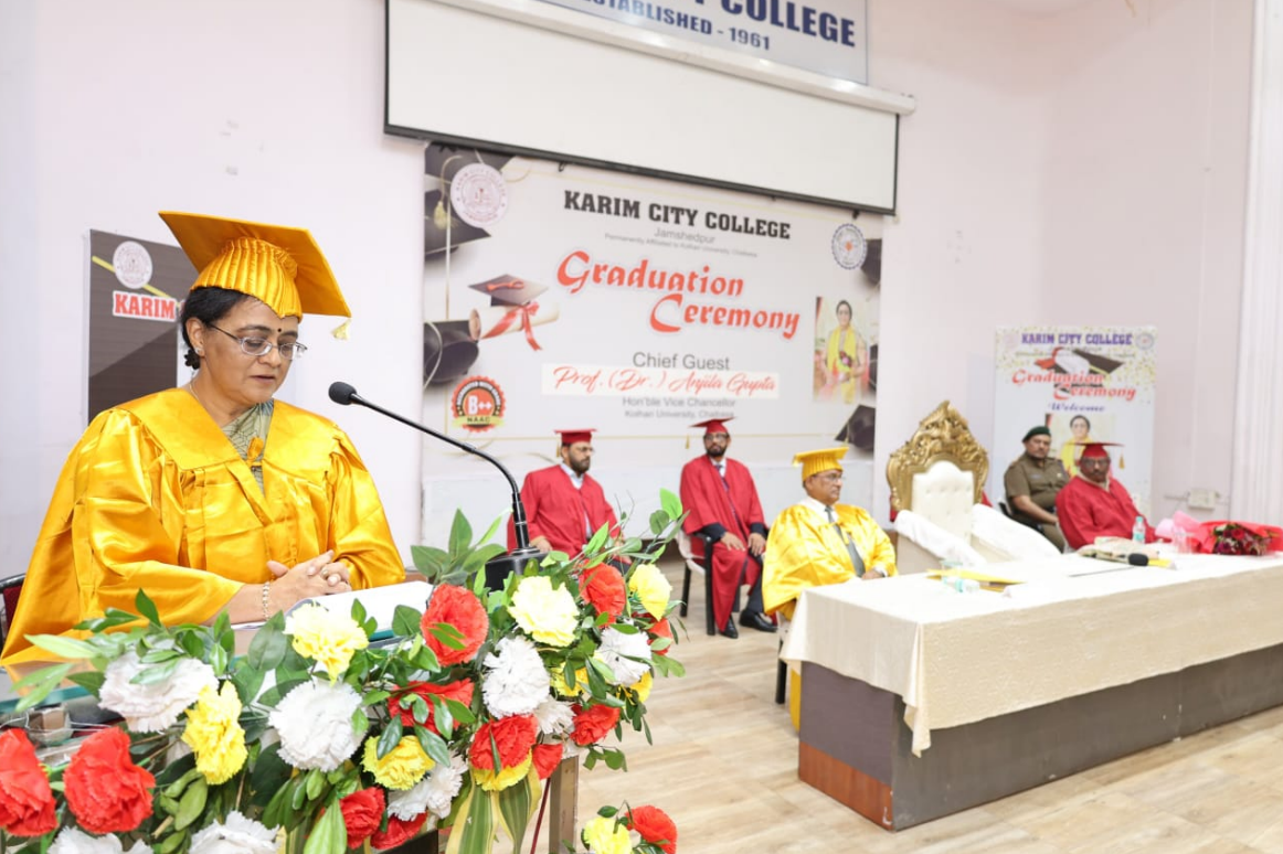 मुख्य अतिथि कोल्हान विश्वविद्यालय, चाईबासा की वाइस चांसलर डॉ अंजिला गुप्ता ने करीम सिटी कॉलेज को बधाई देते हुए कहा कि आज का यह क्षण गर्व और संतोष का क्षण है। आज का यह कार्यक्रम करीम सिटी कॉलेज की शैक्षणिक सजगता और शिक्षा के प्रति लगन का प्रमाण है। प्रमाण-पत्र प्राप्त करने वाले विद्यार्थियों को संबोधित करते हुए उन्होंने कहा कि यह प्रमाण पत्र केवल शैक्षिक सफलता का प्रमाण नहीं बल्कि इससे आपका भविष्य और आपके जीवन की सफलता जुड़ी हुई है।