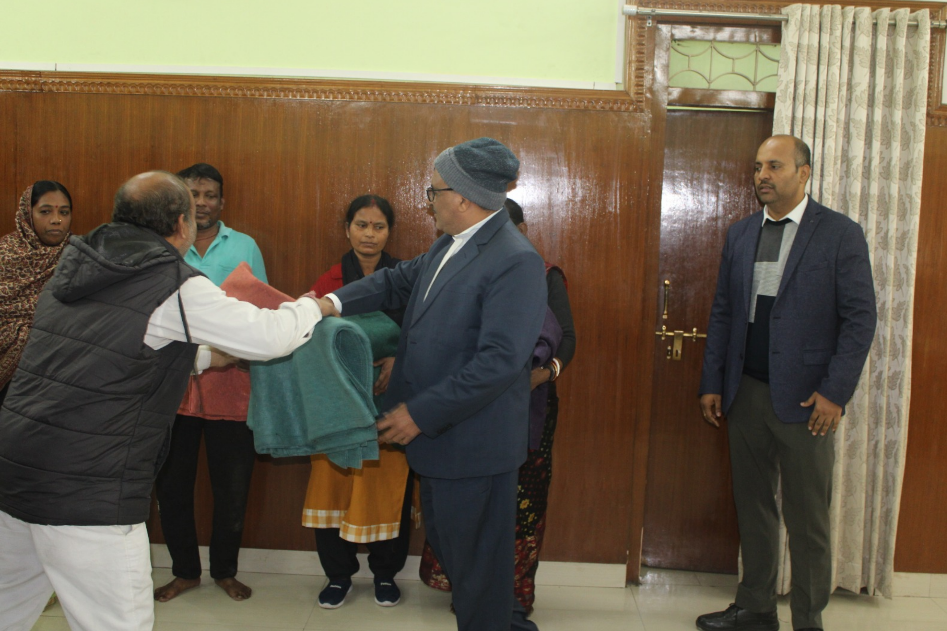 जिला जज अरविंद पांडेय ने ठंड से बचाव के लिए गरीब महिलाओं को बांटे कंबल