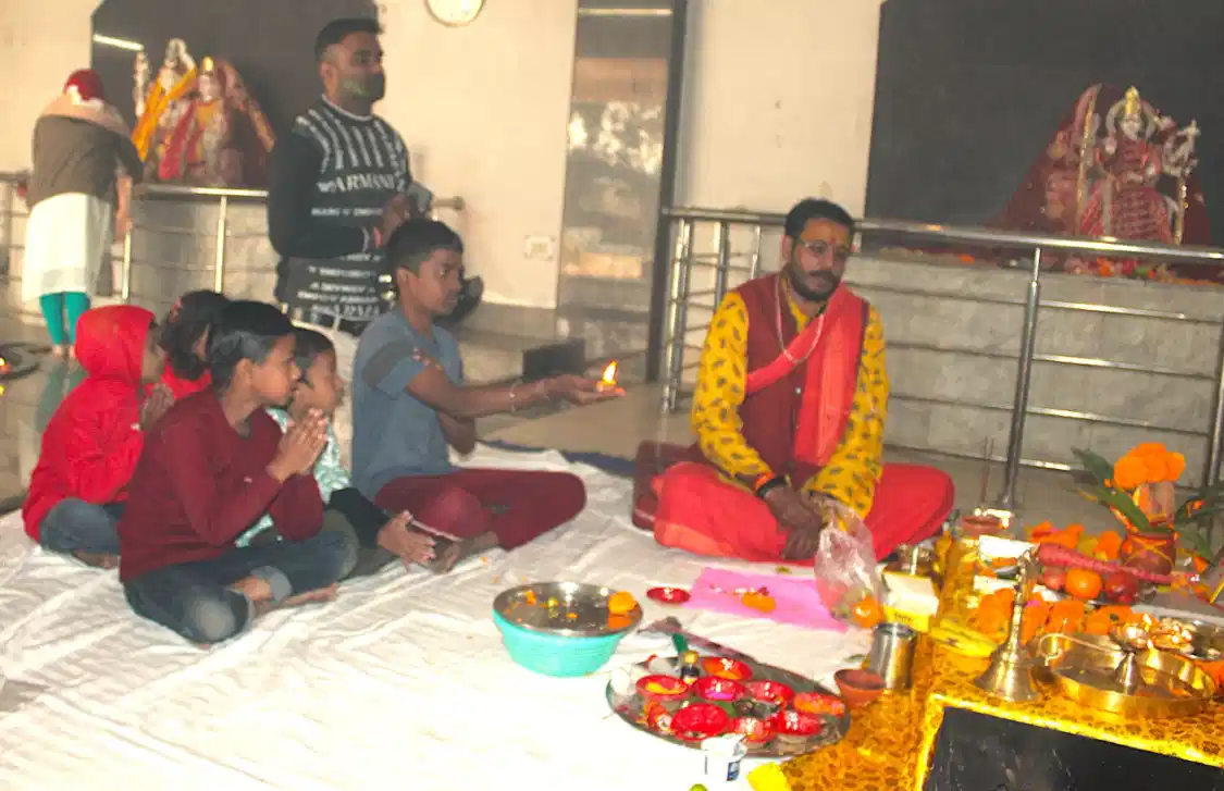 A pushpanjali offering was made to the goddess. The vidya arambh sanskar ceremony initiated learning for children. In addition, a havan was conducted following traditional customs.