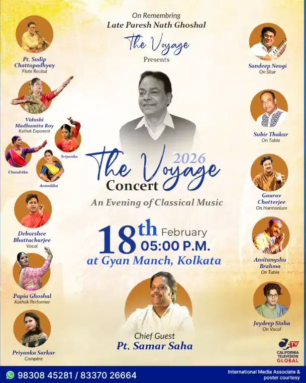 The cultural organisation THE VOYAGE will present Voyage Concert 2026. The event will be held at Gyan Manch in Kolkata.