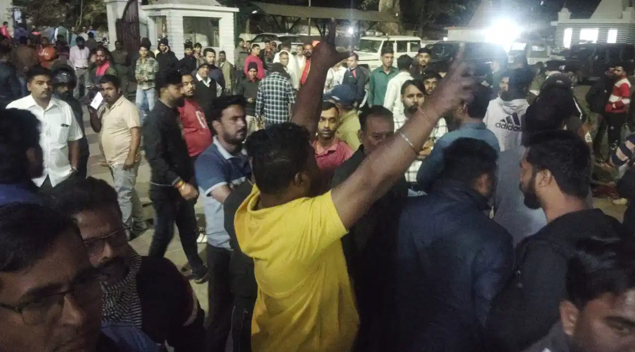 Protesters gathered outside Golmuri police station in the morning. They demanded swift action against unidentified gunmen.