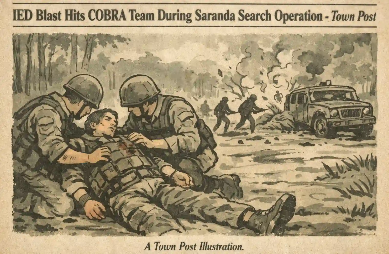 CHAIBASA – A COBRA battalion Assistant Commandant was critically injured in an IED explosion during an anti-Naxal search operation in Saranda forest of West Singhbhum, with preparations underway to airlift him to Ranchi for advanced treatment.