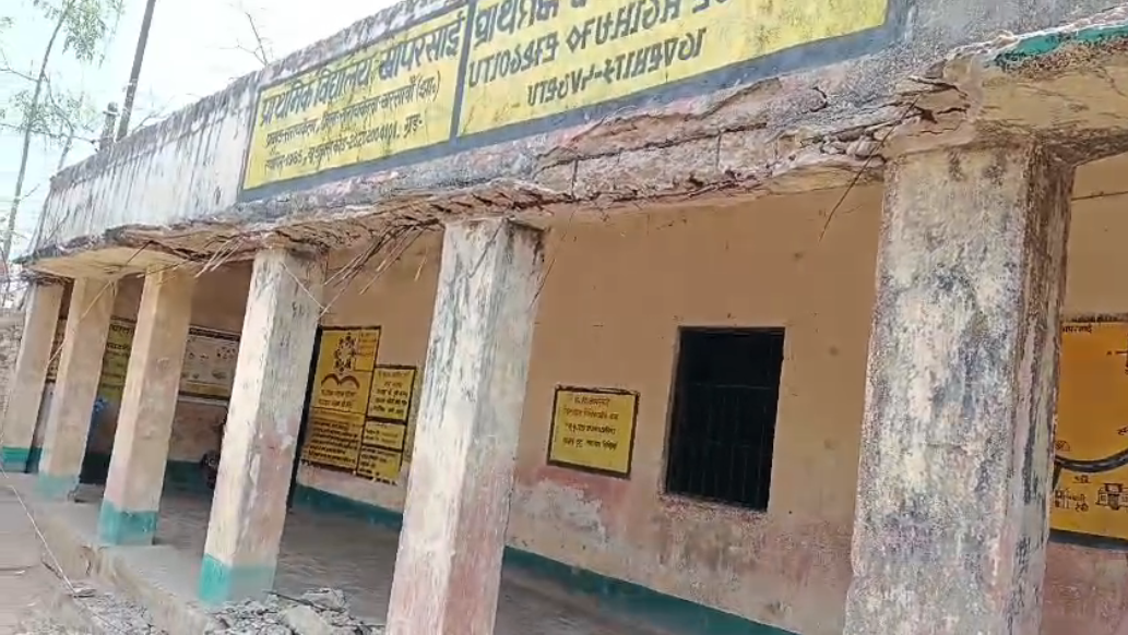 बरसात में छत टपकती है, दीवारों से प्लास्टर गिरता रहता है और कभी भी बड़ा हादसा हो सकता है. इसके बावजूद बच्चों को इसी खतरनाक भवन में पढ़ाई करने को मजबूर किया जा रहा है.