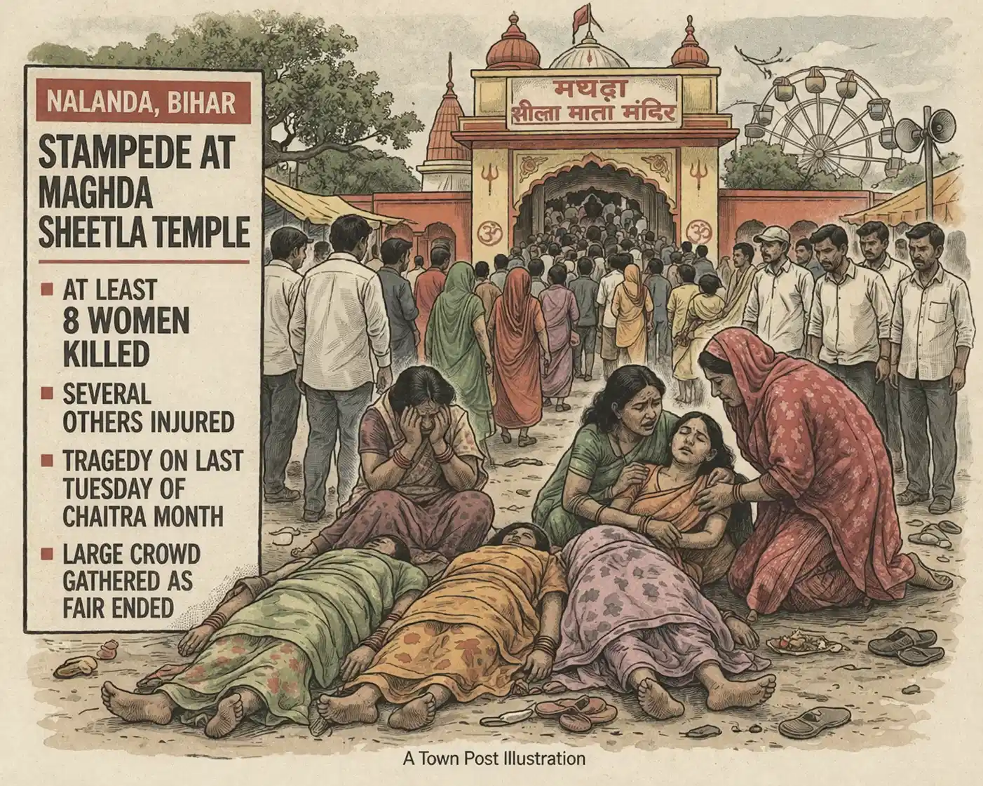 नालंदा के मगधा शीतला मंदिर में चैत्र माह के अंतिम मंगलवार को भगदड़, 8 महिलाओं की मौत, दर्जनभर से ज्यादा घायल