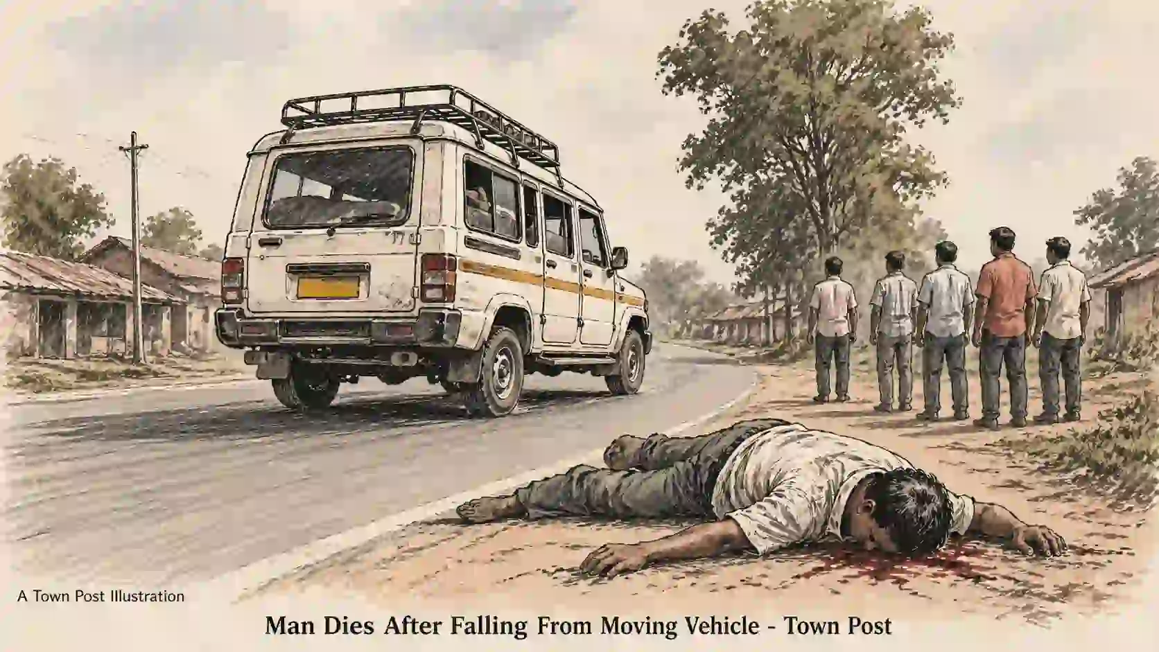 दूसरी ओर गाड़ी की छत से वह नीचे गिर गया। गिरने से उसके सिर में गंभीर चोट आई।