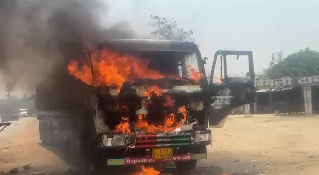 चौपारण क्षेत्र में अचानक आग से टेलर पूरी तरह नष्ट
