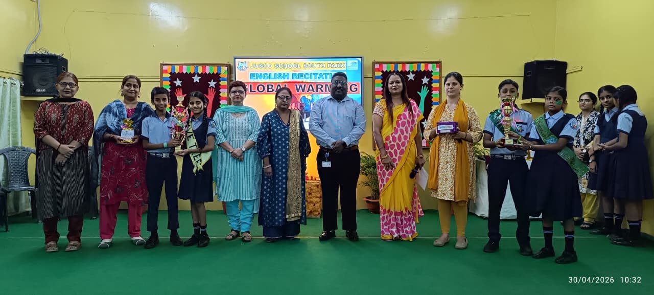 जुस्को स्कूल साउथ पार्क में चोरल इंग्लिश रेसिटेशन का आयोजन, ग्लोबल वार्मिंग थीम पर छात्रों ने दिखाई प्रतिभा
